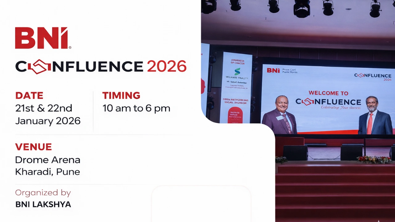 BNI Confluence 2026 is a flagship 2-day business networking and innovation summit organized by Confluence by Lakshya, representing the Pune East Region and Pune North Region. The event is strategically designed to create measurable business impact by bringing together decision-makers, entrepreneurs, and industry leaders on a single high-value platform.