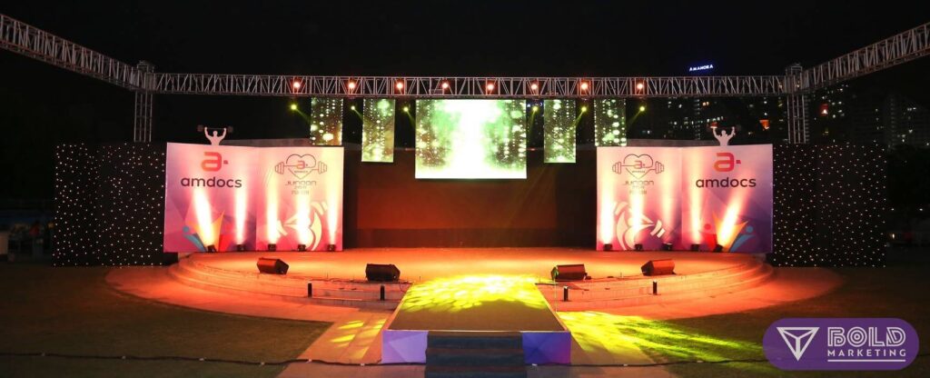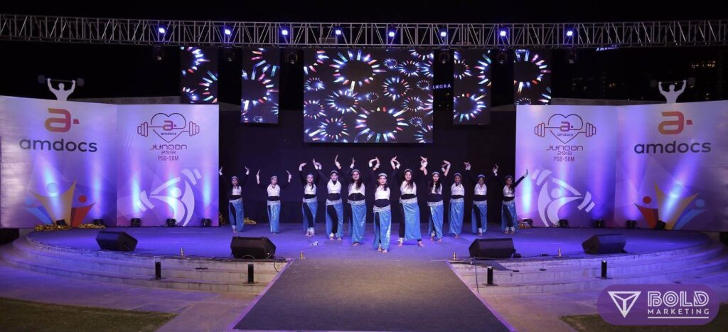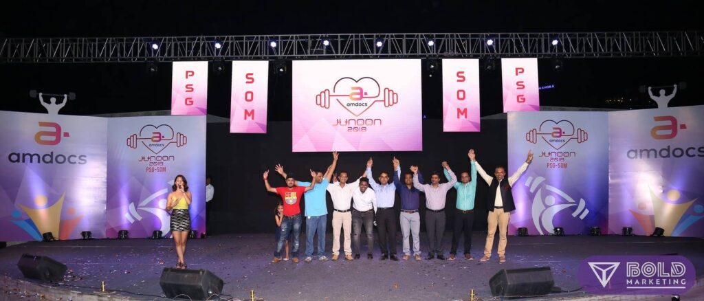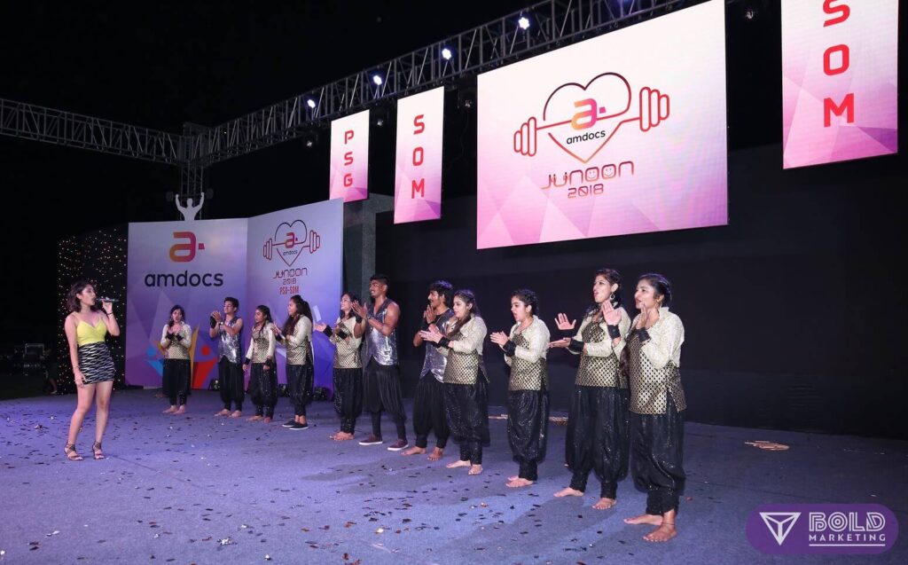 AMDOCS’ celebrated its annual function ‘Junoon 2018’ with a health and happiness theme in a grand manner at the Amanora Fern Club’s amphitheatre on 26 May, 2018. Bold Marketing was chosen to work around this theme and conceptualise the event with end to end event management and production. The event comprised of various innovative activities like ‘Make your own juice’, a chroma photo booth, an elaborate South Indian food stall section, kids area and more!